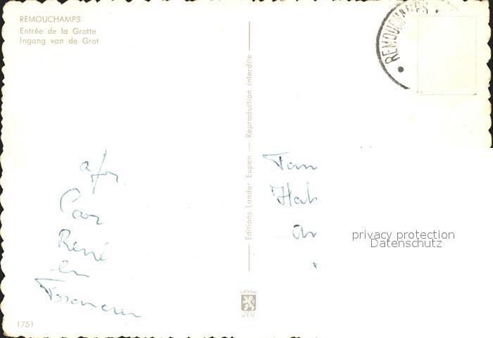 72246294 carte postale Remouchamps Liege Entrée de la Grotte postalisch gelaufen Erhaltung siehe scans KatCode: 11070062001431