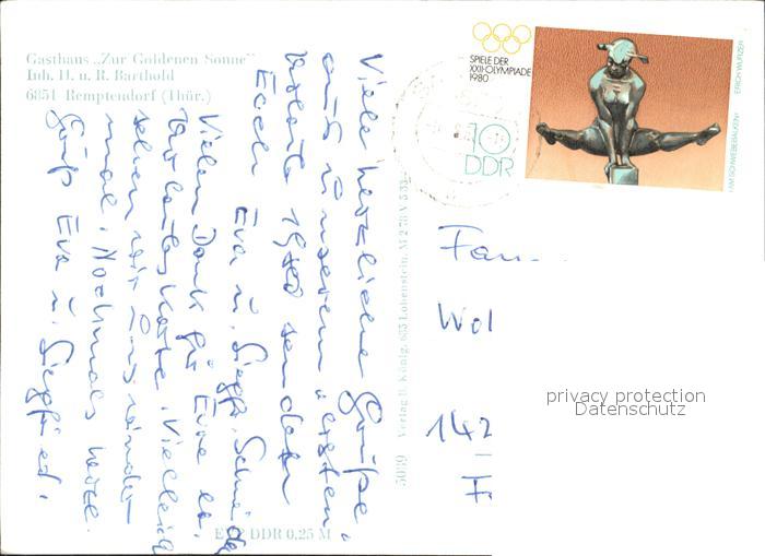 72025657 alte Postkarte Remptendorf Gasthaus Zur Goldenen Sonne postalisch gelaufen Erhaltung siehe scans KatCode: 11110016075134