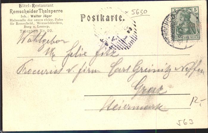 41502864 REMSCHEID NRW Talsperre Eschbachthal postalisch gelaufen Erhaltung siehe scans Alte Ansichtskarte Postkarte alte Postkarte hz_C Katcode 11110005120000
