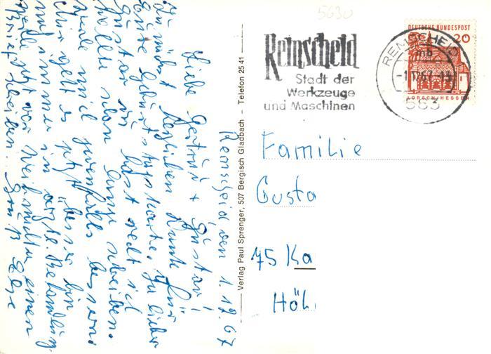 73943319 alte Postkarte Remscheid Patronatsschiff Stadttheater und Rathaus Ev Stadtkirche postalisch gelaufen Erhaltung siehe scans [WerneD78] KatCode: 11110005120000