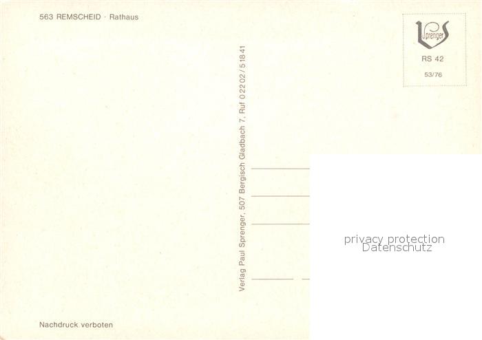 72989525 Remscheid Rathaus postalisch nicht gelaufen Erhaltung siehe scans [FriedD77] KatCode: 11110005120000