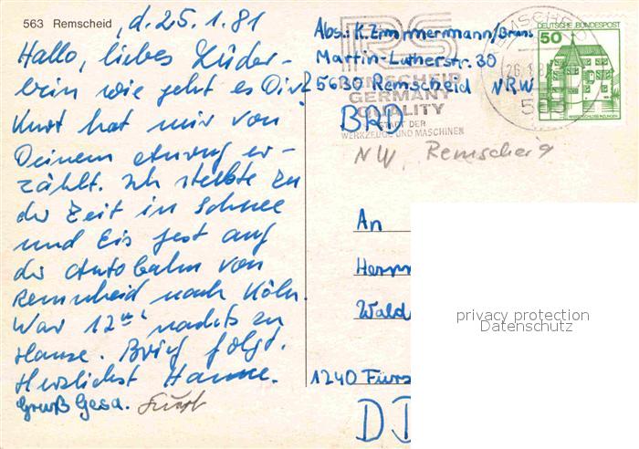 72905869 alte Postkarte Remscheid Rathaus Marktplatz ParkBrunnen postalisch gelaufen Erhaltung siehe scans [AndreD76] KatCode: 11110005120000