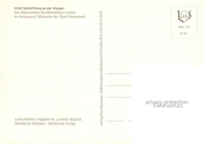 72985234 Remscheid Schloss Burg an der Wupper Wahrzeichen des Bergischen Landes postalisch nicht gelaufen Erhaltung siehe scans [LiesaD40] KatCode: 11110005120000
