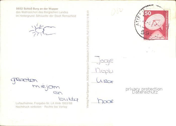 72519914 alte Postkarte Remscheid Schloss Burg an der Wupper postalisch gelaufen Erhaltung siehe scans KatCode: 11110005120000