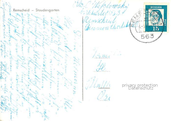 73283293 alte Postkarte Remscheid Staudengarten postalisch gelaufen Erhaltung siehe scans [NatalD47] KatCode: 11110005120000