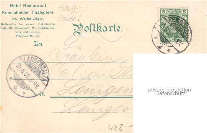 43000392 alte Postkarte Remscheid Talsperre im Eschbachtal postalisch gelaufen Erhaltung siehe scans [FriedD77] KatCode: 11110005120000