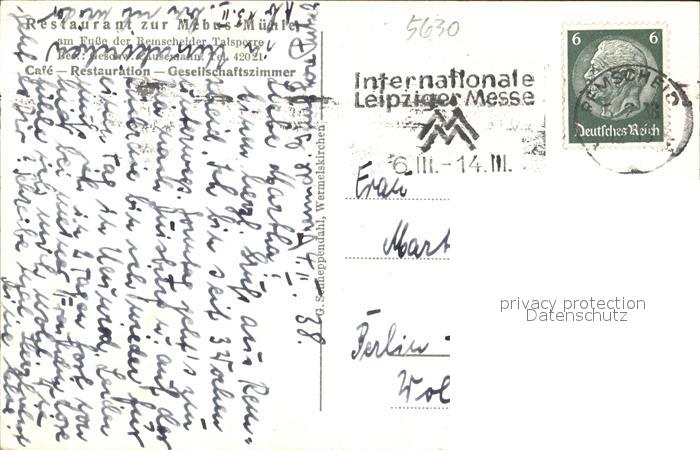 32102619 alte Postkarte Remscheid Talsperre Restaurant zur Mebus-Muehle postalisch gelaufen Erhaltung siehe scans KatCode: 11110005120000