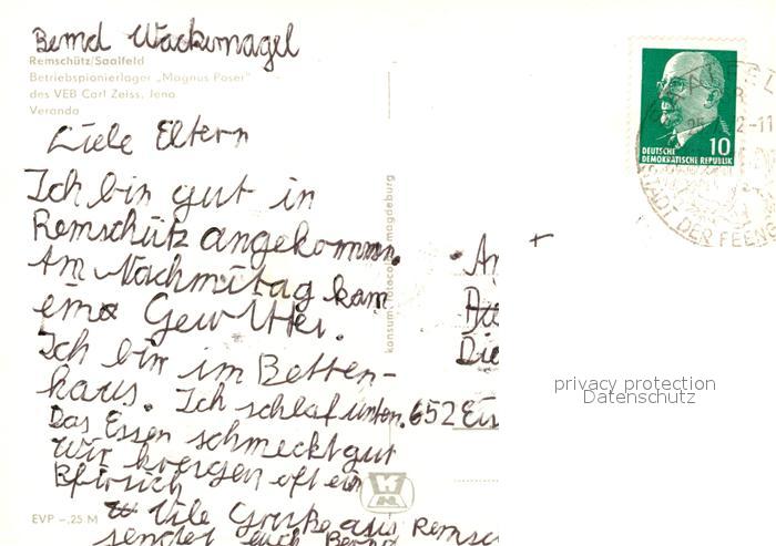 73103077 alte Postkarte Remschuetz Saalfeld Betriebspionierlager VEB Carl Zeiss Jena postalisch gelaufen Erhaltung siehe scans [KathaD81] KatCode: 11110016073077