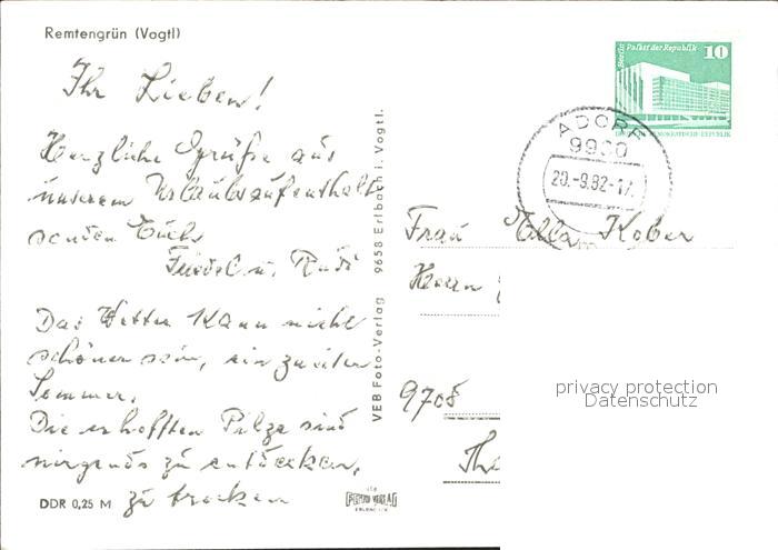72381971 alte Postkarte Remtengruen Adorf Betriebsferienheim Plauener Gardiene postalisch gelaufen Erhaltung siehe scans KatCode: 11110014178010