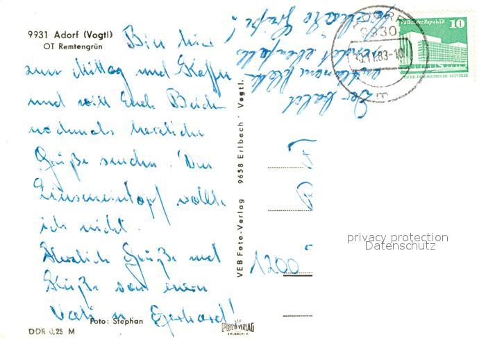 73031844 alte Postkarte Remtengruen Adorf Gaststaette Zum Turm postalisch gelaufen Erhaltung siehe scans [KathaD81] KatCode: 11110014178010