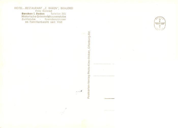 73870733 Renchen Hotel Restaurant zum Baeren Brauerei postalisch nicht gelaufen Erhaltung siehe scans [FriedD77] KatCode: 11110008317110