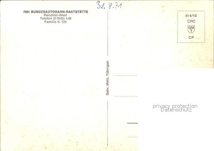 72126224 Renchtal Autobahn Raststaette Renchtal West postalisch nicht gelaufen Erhaltung siehe scans KatCode: 11110008317089
