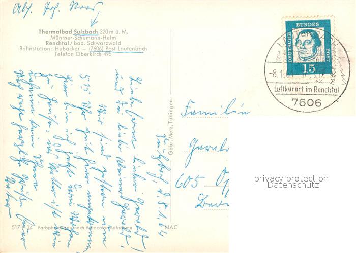 73131439 alte Postkarte Renchtal Thermalbad Sulzbach postalisch gelaufen Erhaltung siehe scans [NatalD47] KatCode: 11110008317089
