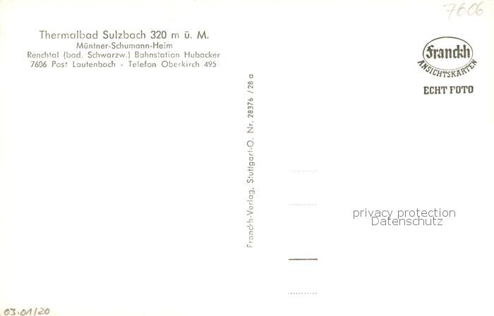 73762686 Renchtal Thermalbad Sulzbach Muentner Schumann Heim postalisch nicht gelaufen Erhaltung siehe scans [FriedD77] KatCode: 11110008317089
