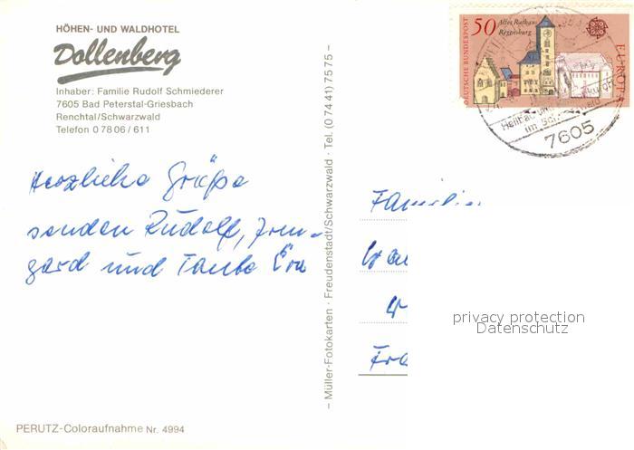 72663253 alte Postkarte Renchtal Waldhotel Dollenberg postalisch gelaufen Erhaltung siehe scans [NatalD47] KatCode: 11110008317089