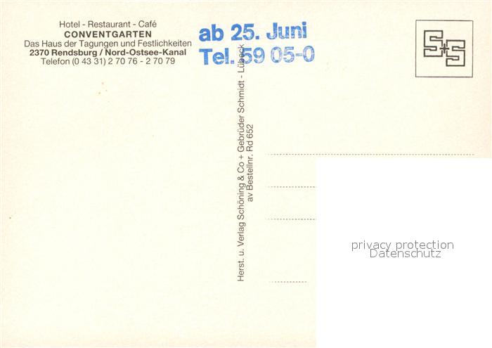 73324256 Rendsburg Hotel Restaurant Cafe Conventgarten Nord Ostsee Kanal postalisch nicht gelaufen Erhaltung siehe scans [FriedD77] KatCode: 11110001058135