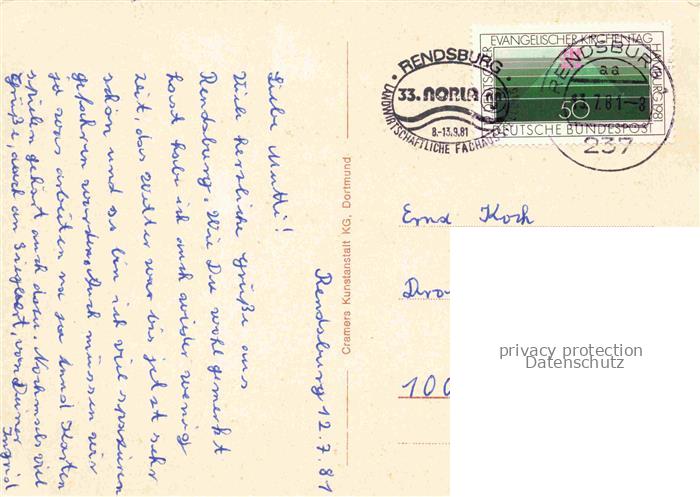 74043378 Rendsburg Schleswig-Holstein Adolf-Steckel-Haus Heimvolkshochschule Haupthaus postalisch gelaufen Erhaltung siehe scans [FriedD77] alte Postkarte Frie Katcode 11110001058135