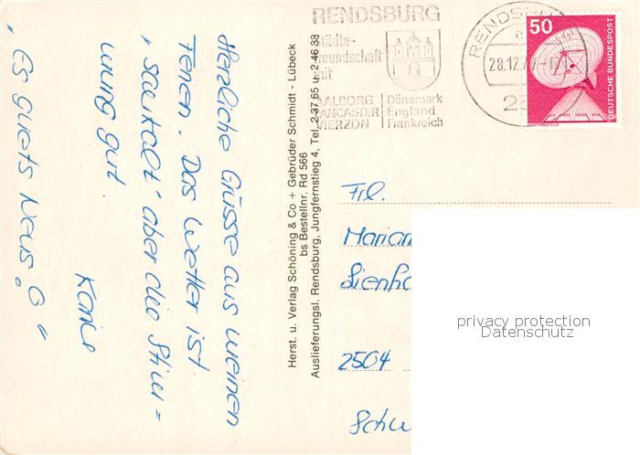 73835161 Rendsburg Schleswig-Holstein Altes Rathaus Stadttheater Hohe Strasse Strassentunnel Hoheluft Hochbruecke Schwimm und Hallenbad Weisse Bruecke Wanderweg am Kanal postalisch gelaufen Erhaltung siehe scans [WerneD78] alte Postkarte Wern Katcode 11110001058135