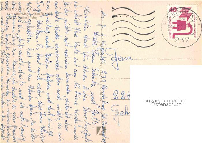 72821402 alte Postkarte Rendsburg Schleswig-Holstein Altstaedter Markt Altes Rathaus Marienkirche postalisch gelaufen Erhaltung siehe scans [FriedD77] KatCode: 11110001058135
