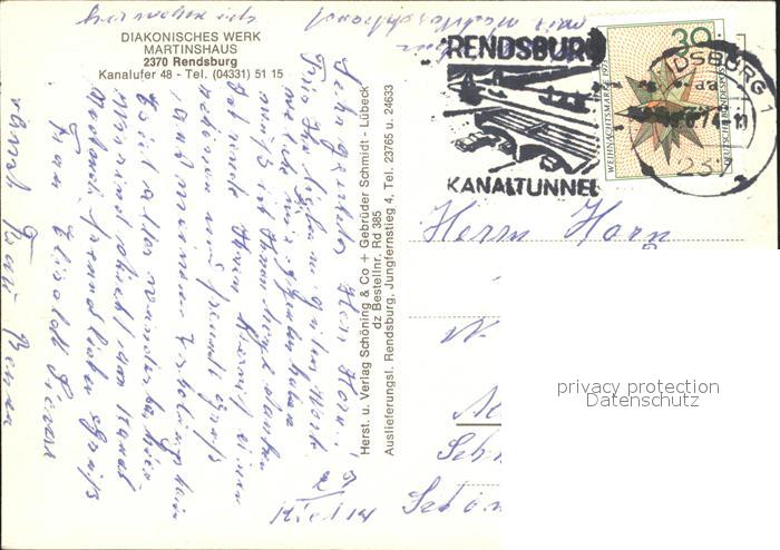 72111606 alte Postkarte Rendsburg Schleswig-Holstein Diakonisches Werk Martinshaus postalisch gelaufen Erhaltung siehe scans KatCode: 11110001058135