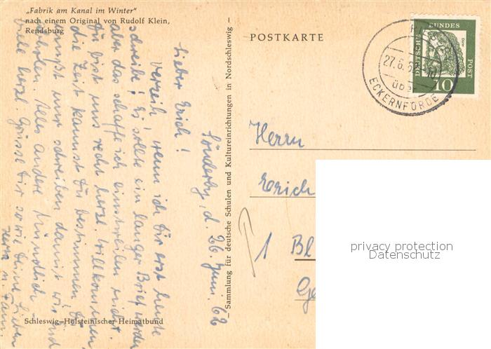 73768592 Rendsburg Schleswig-Holstein Fabrik am Kanal im Winter postalisch gelaufen Erhaltung siehe scans [WerneD78] alte Postkarte Wern Katcode 11110001058135