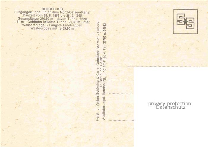 74132511 Rendsburg Schleswig-Holstein Fussgaengertunnel Nord Ostsee Kanal postalisch nicht gelaufen Erhaltung siehe scans [SanaeD93] KatCode: 11110001058135