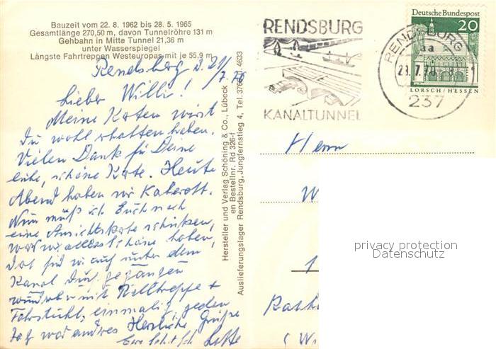 73109039 alte Postkarte Rendsburg Schleswig-Holstein Fussgaengertunnel postalisch gelaufen Erhaltung siehe scans [NatalD47] KatCode: 11110001058135