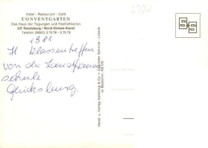 73941249 Rendsburg Schleswig-Holstein Hotel Restaurant Café Conventgarten Nachtaufnahme postalisch nicht gelaufen Erhaltung siehe scans [FriedD77] Frie Katcode 11110001058135