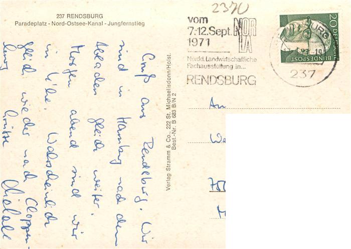 73941243 Rendsburg Schleswig-Holstein Paradeplatz Nord-Ostsee-Kanal Dampfer Jungfernstieg postalisch gelaufen Erhaltung siehe scans [FriedD77] alte Postkarte Frie Katcode 11110001058135