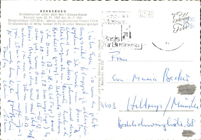 41290802 Rendsburg Schleswig-Holstein Strassentunnel Nord-Ostsee-Kanal Autos postalisch gelaufen gute Erhaltung Alte Ansichtskarte Postkarte alte Postkarte hz_L Katcode 11110001058135