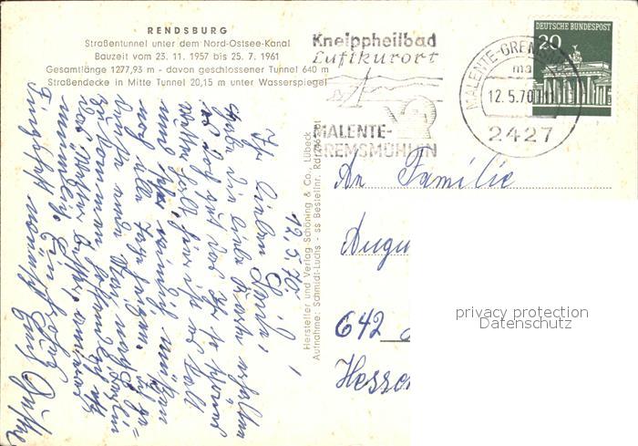 72116587 alte Postkarte Rendsburg Schleswig-Holstein Strassentunnel unter Nord-Ostsee-Kanal postalisch gelaufen Erhaltung siehe scans KatCode: 11110001058135