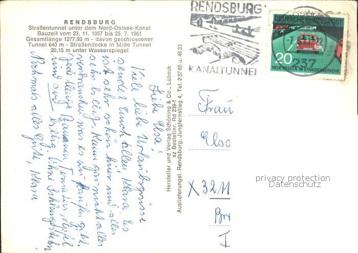 72136750 alte Postkarte Rendsburg Schleswig-Holstein Strassentunnrl Nord-Ostsee-Kanal postalisch gelaufen Erhaltung siehe scans KatCode: 11110001058135
