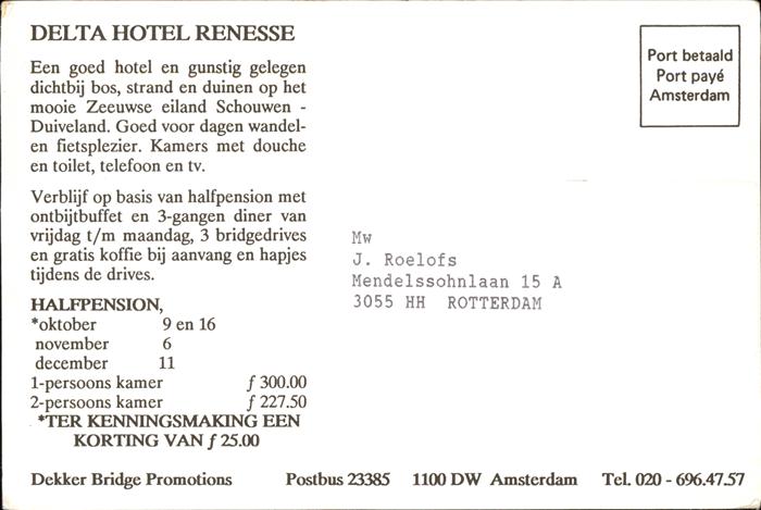 Renesse Delta Hotel Terrasse postalisch nicht gelaufen Erhaltung siehe scans