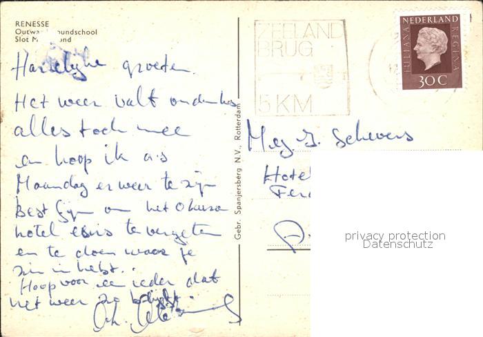old postcard Renesse Schule und Schloss postalisch gelaufen Erhaltung siehe scans