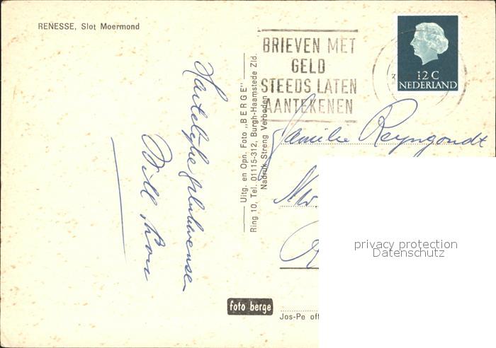 old postcard Renesse Slot Moermond postalisch gelaufen Erhaltung siehe scans