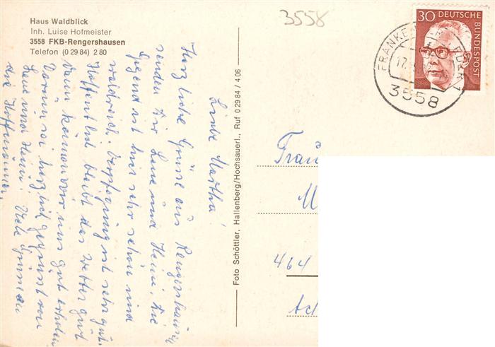 73935052 alte Postkarte Rengershausen Frankenberg Eder Nuhnetal Haus Waldblick Gaststube Panorama postalisch gelaufen Erhaltung siehe scans [FriedD77] KatCode: 11110006635011