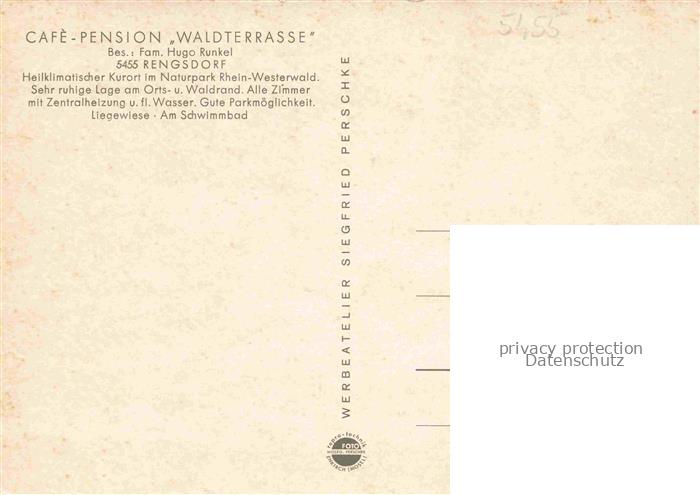 74050414 Rengsdorf Cafe Pension Waldterrasse postalisch nicht gelaufen Erhaltung siehe scans [WerneD78] KatCode: 11110007138061