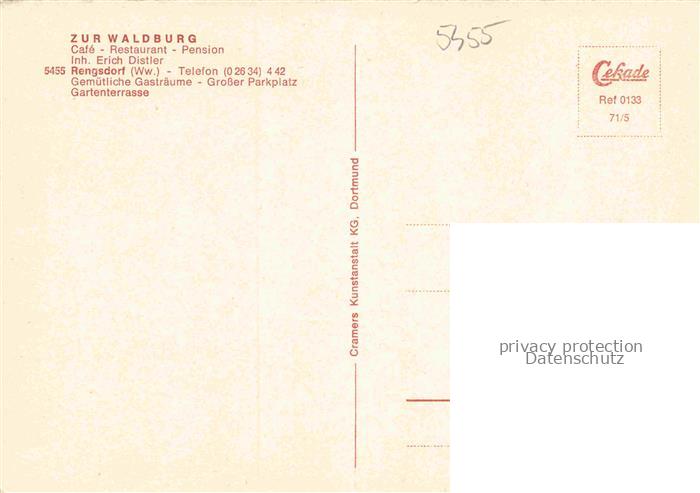 74050106 Rengsdorf Cafe Restaurant Waldburg Gaststube Terrasse postalisch nicht gelaufen Erhaltung siehe scans [WerneD78] KatCode: 11110007138061