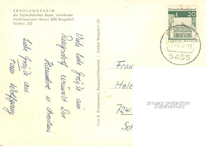 73643396 alte Postkarte Rengsdorf Erholungsheim der Farbenfabriken Bayer Leverkusen postalisch gelaufen Erhaltung siehe scans [WerneD78] KatCode: 11110007138061