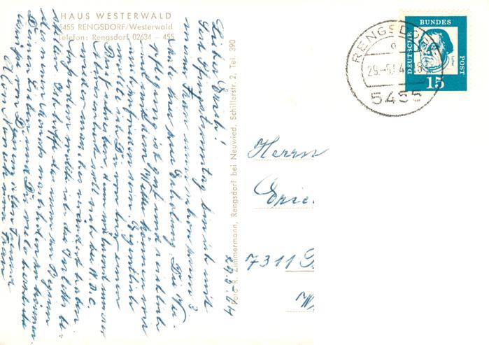 73892232 alte Postkarte Rengsdorf Haus Westerwald postalisch gelaufen Erhaltung siehe scans [FriedD77] KatCode: 11110007138061