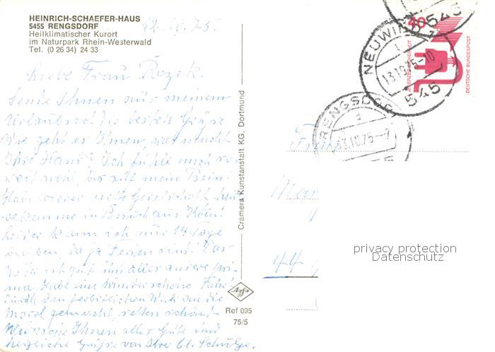 73832706 alte Postkarte Rengsdorf Heinrich-Schaefer-Haus Speisesaal Restaurant Gaestehaus postalisch gelaufen Erhaltung siehe scans [FriedD77] KatCode: 11110007138061