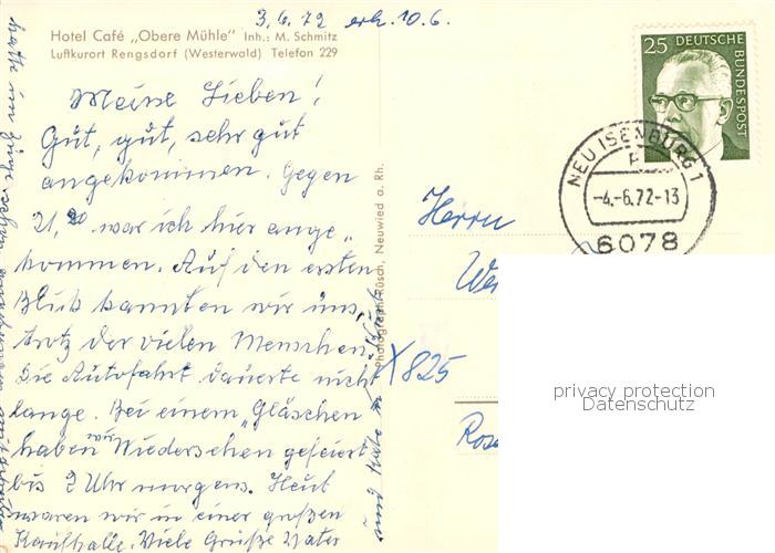73802462 alte Postkarte Rengsdorf Hotel Cafe Obere Muehle Schwanenteich Luftkurort postalisch gelaufen Erhaltung siehe scans [FriedD77] KatCode: 11110007138061