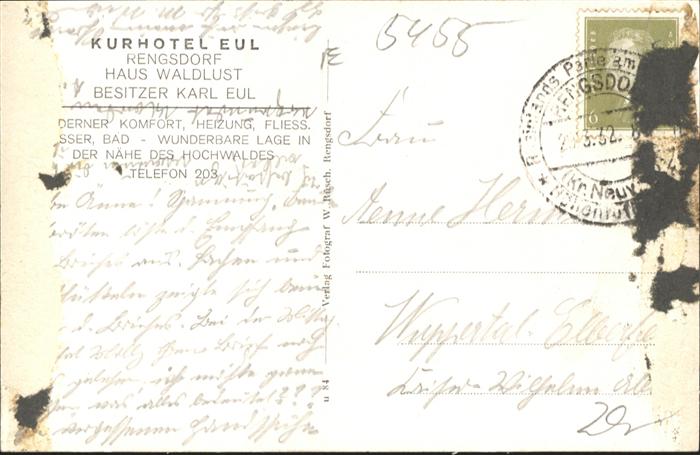 40938754 Rengsdorf Hotel Eul postalisch gelaufen Alte Ansichtskarte Postkarte alte Postkarte Katcode 11110007138061