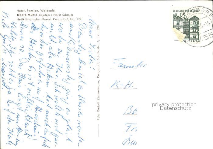 72112883 alte Postkarte Rengsdorf Hotel Pension Waldcafe Obere Muehle postalisch gelaufen Erhaltung siehe scans KatCode: 11110007138061