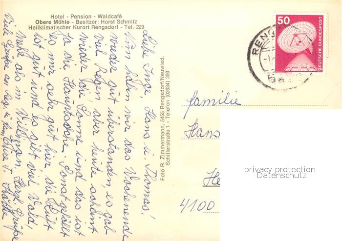 73643390 alte Postkarte Rengsdorf Hotel Pension Waldcafe Oberer Muehle postalisch gelaufen Erhaltung siehe scans [WerneD78] KatCode: 11110007138061