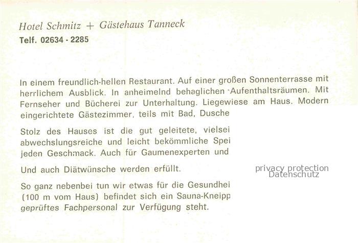 74050107 Rengsdorf Hotel Schmitz mit Gaestehaus Tanneck Gastraeume postalisch nicht gelaufen Werbekarte (keine Postkarte) Erhaltung siehe scans [WerneD78] KatCode: 11110007138061