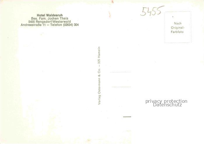 74050445 Rengsdorf Hotel Waldesruh postalisch nicht gelaufen Erhaltung siehe scans [WerneD78] KatCode: 11110007138061