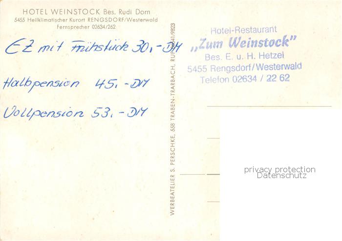 73801127 Rengsdorf Hotel Weinstock postalisch nicht gelaufen Erhaltung siehe scans [WerneD78] KatCode: 11110007138061