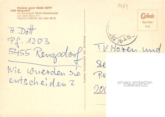 73643391 alte Postkarte Rengsdorf Pension garni Haus Dott postalisch gelaufen Erhaltung siehe scans [WerneD78] KatCode: 11110007138061