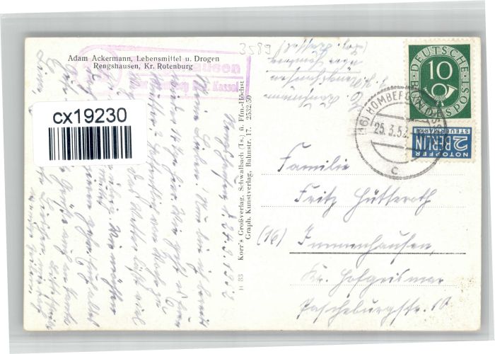 30725309 alte Postkarte Rengshausen Hessen postalisch gelaufen KatCode: 11110006634011